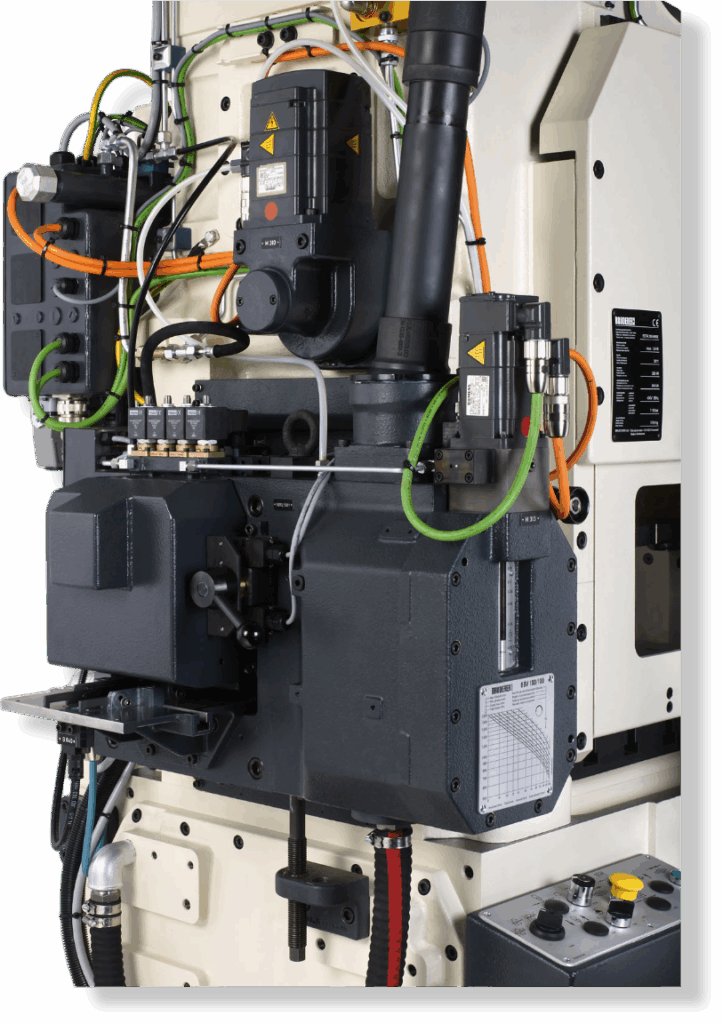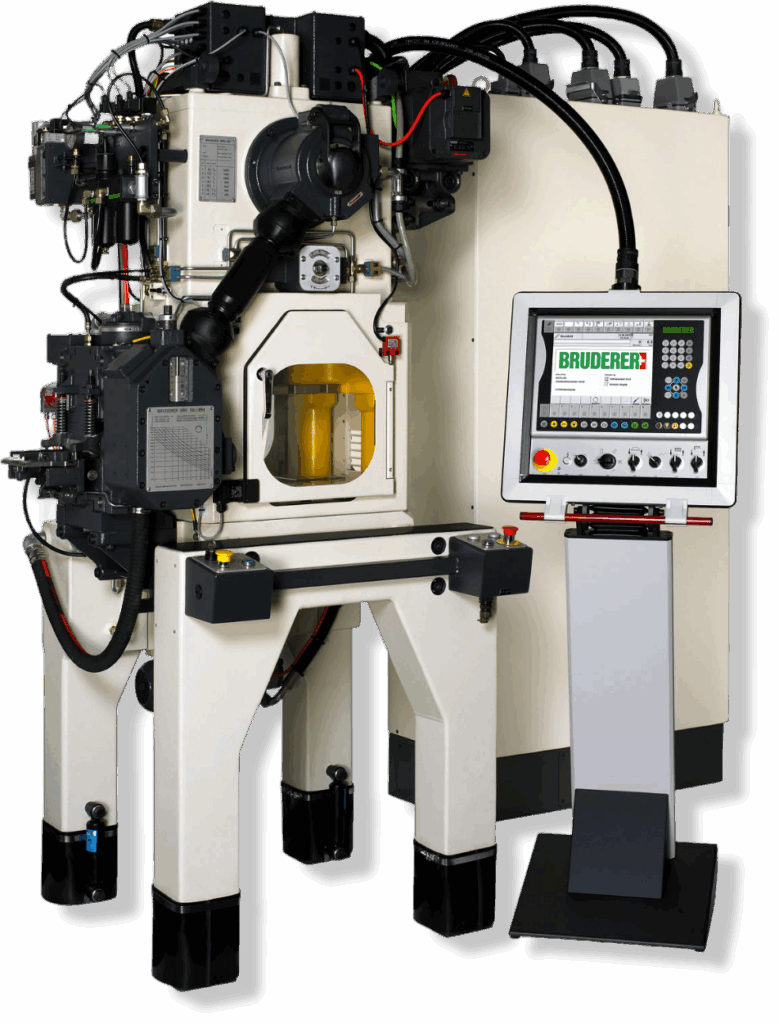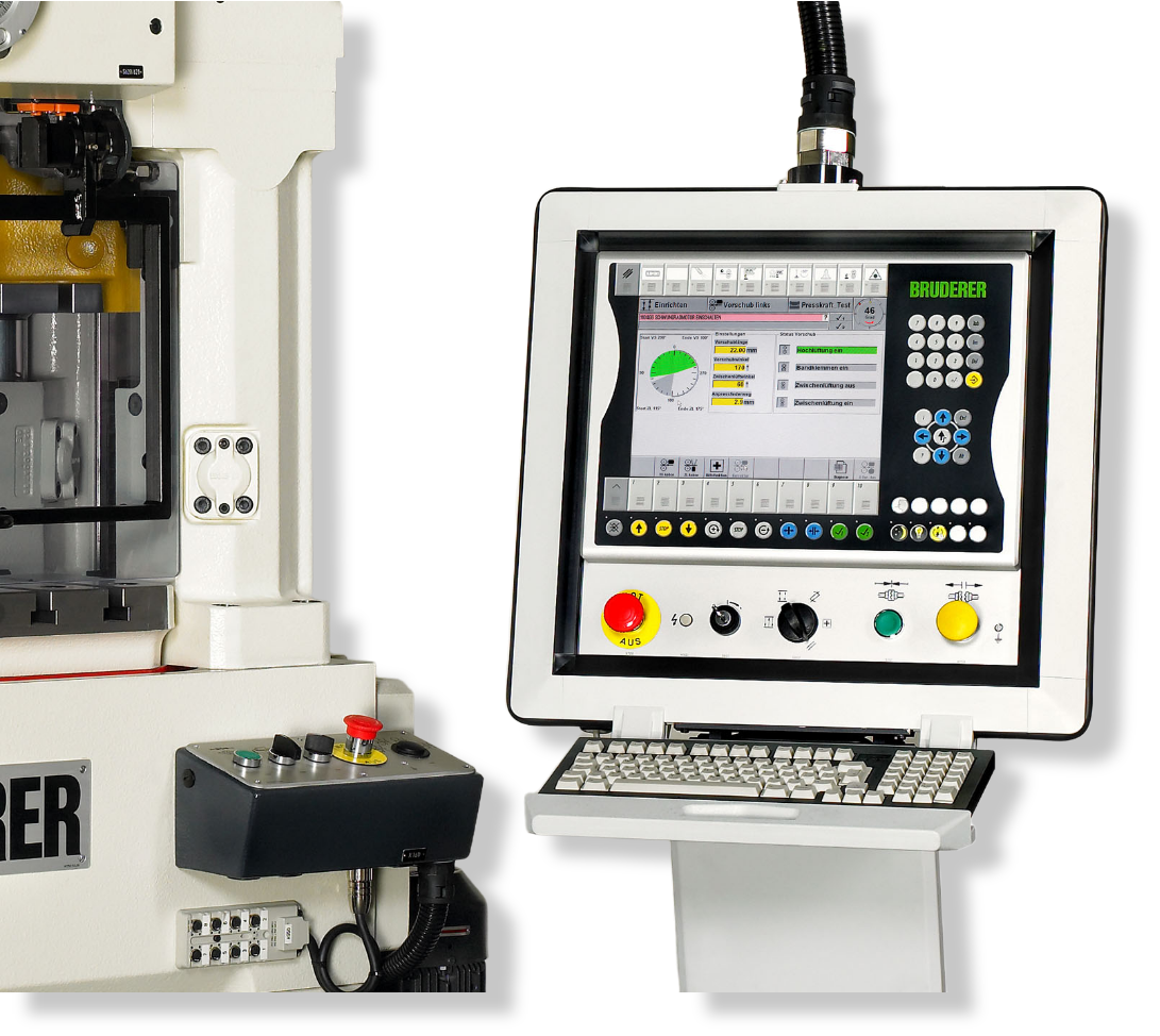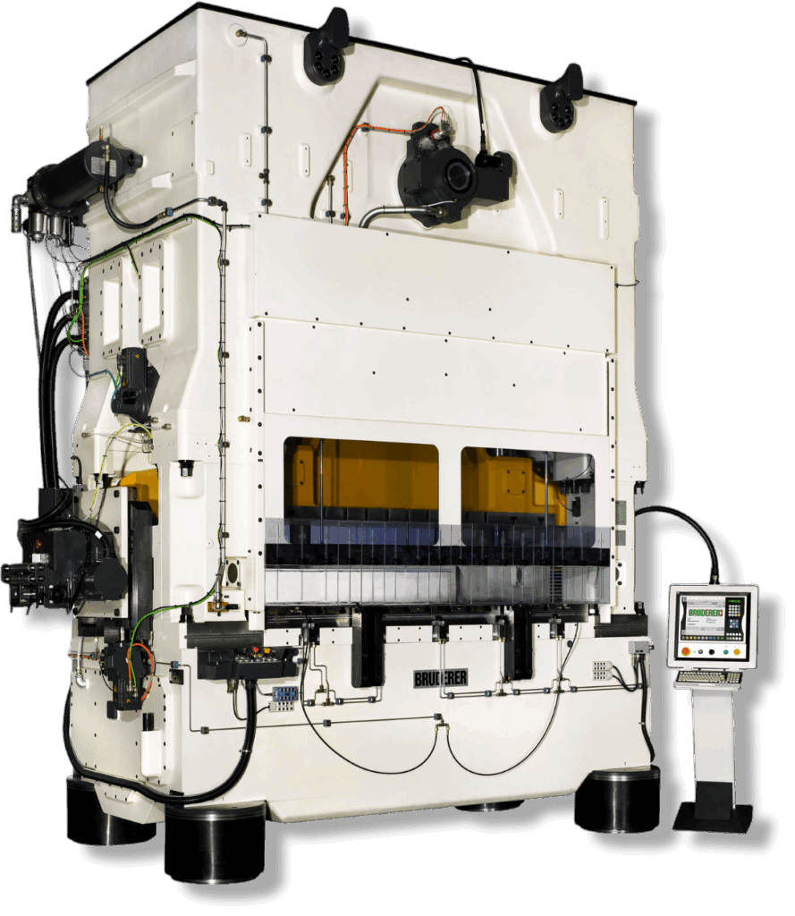 Prasy szybkobieżne Bruderer wyposażone są w unikalny system dźwigni oraz regulowany skok, co pozwala na szybkie i precyzyjne dopasowanie parametrów pracy do różnych detali. Zaawansowane sterowanie CNC zapewnia intuicyjną obsługę i łatwą konfigurację, a system równoważenia masy – stabilność oraz utrzymanie dokładnego położenia dolnego martwego punktu (BDC) przez cały cykl pracy. Dzięki temu prasy Bruderer są elastyczne i wydajne.
