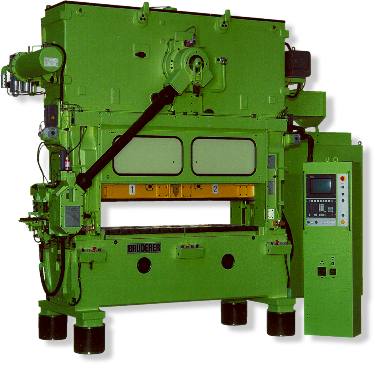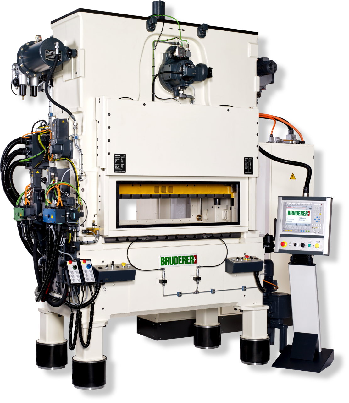 Wysokiej jakości jednostka sprzęgła i hamulca w prasach Bruderer zapewnia precyzyjne pierwsze i ostatnie uderzenia tłoka, co minimalizuje odpady materiałowe i zwiększa efektywność produkcji. Ten zaawansowany system sterowania gwarantuje bezpieczeństwo i stabilność pracy maszyny, nawet przy dużych prędkościach tłoczenia.