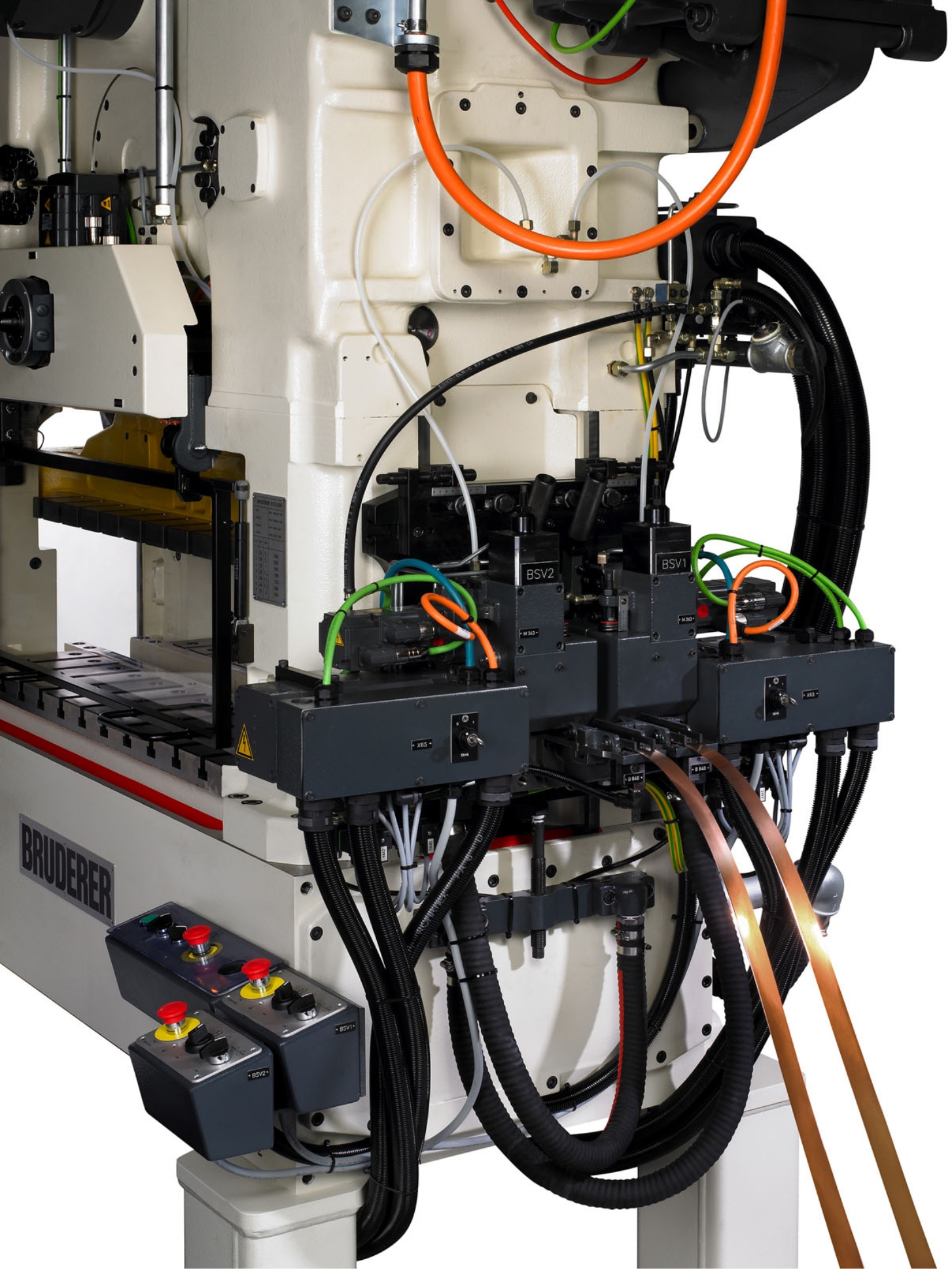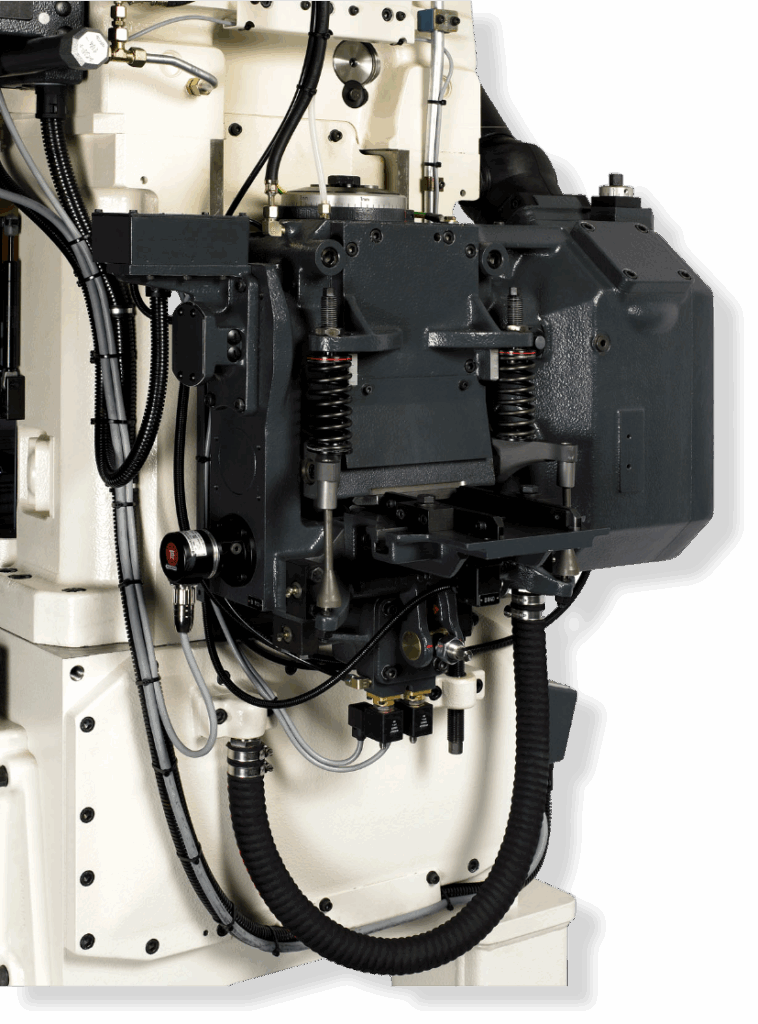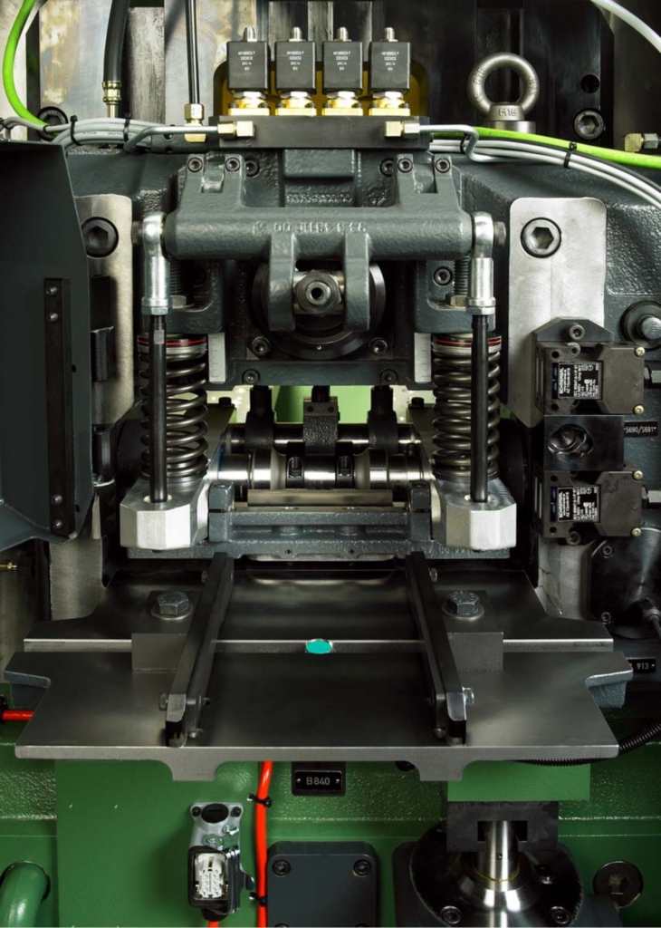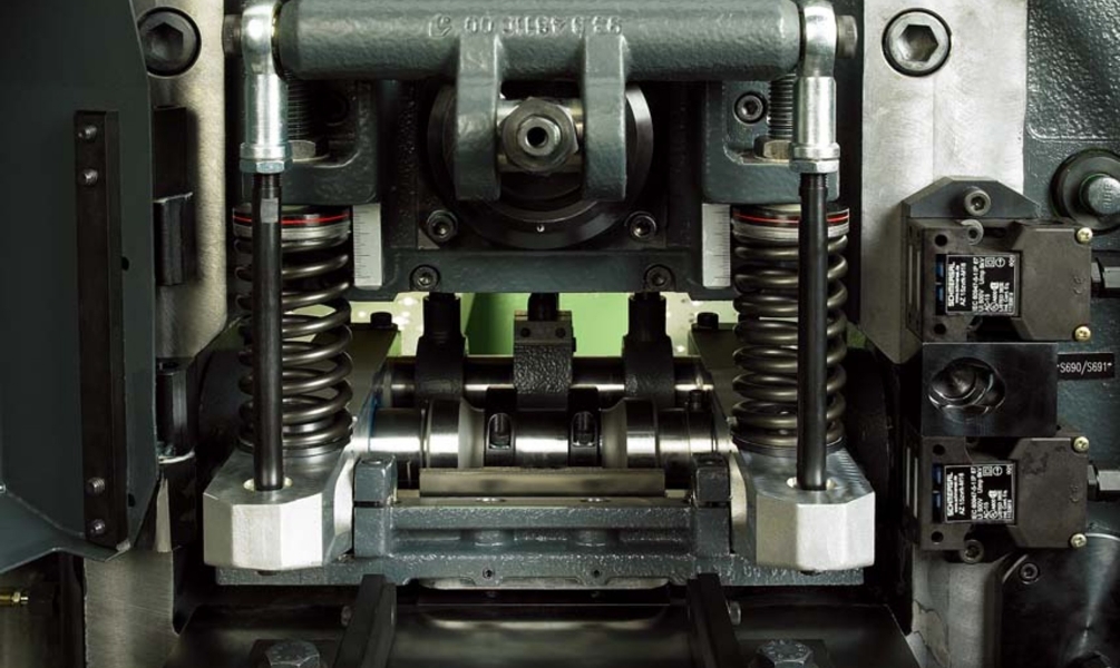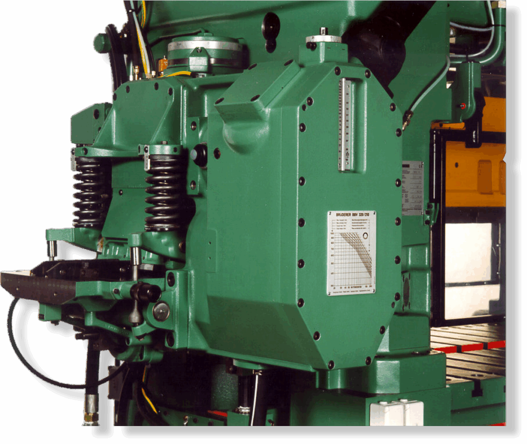 Termoneutralny system prowadzenia mimośrodu Bruderera kompensuje wpływ zmian temperatury na konstrukcję maszyny, co pozwala utrzymać wysoką dokładność prowadzenia narzędzi. Elementy prowadzące na poziomie taśmy minimalizują odkształcenia termiczne, zwiększając żywotność narzędzi oraz jakość produkowanych detali. To rozwiązanie zapewnia powtarzalność i stabilność produkcji nawet w wymagających warunkach.