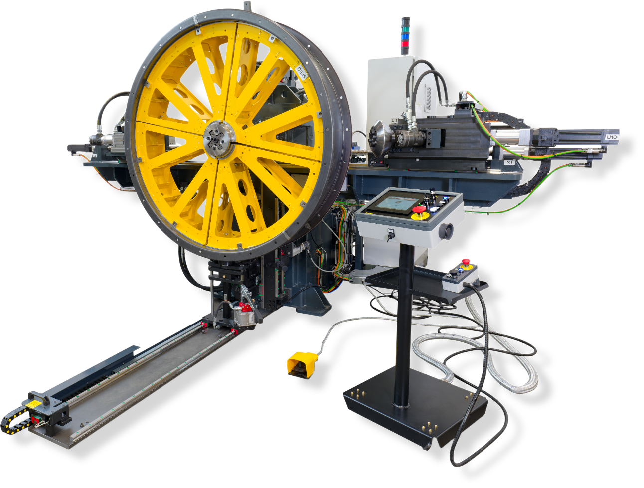 | Sterowanie | PLC, CNC, panel HMI, import CAD |