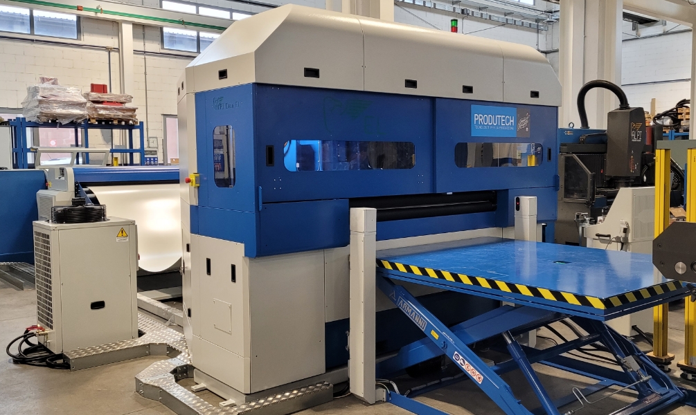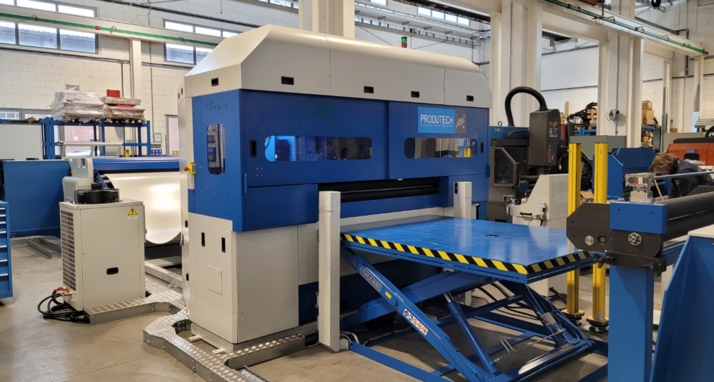 Dzięki głowicy z kilkoma stanowiskami narzędziowymi (do 8 pozycji w jednym koszu narzędziowym, możliwość montażu 2 koszy narzędziowych), maszyna pozwala na tworzenie różnych rodzajów detali bez konieczności zatrzymywania linii. Szybkie programowanie i opcja zmiany układu narzędzi umożliwia realizację zarówno seryjnych, jak i jednostkowych projektów. To sprawia, że wykrawarki Produtech świetnie sprawdzają się w zakładach, gdzie liczy się elastyczność i szybka reakcja w przypadku zmiany zamówień.