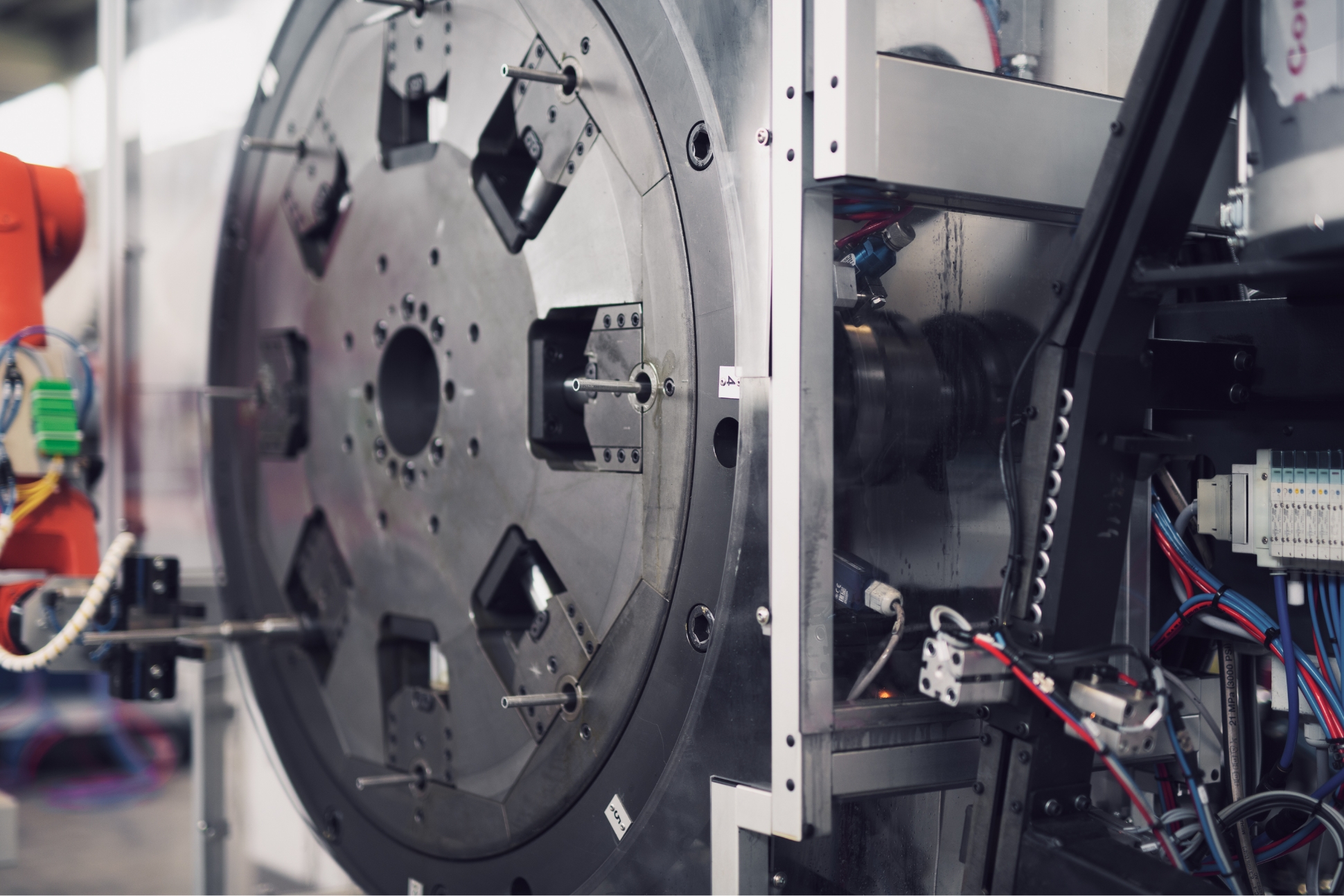 Stosowany w maszynach Grazioli zintegrowany system przenoszenia detali między głowicami gwarantuje płynność procesu, krótszy czas cyklu i pełną powtarzalność wymiarów. To rozwiązanie, które znacząco zwiększa produktywność i stabilność jakości, szczególnie przy produkcji wielkoseryjnej i komponentach o złożonej geometrii.